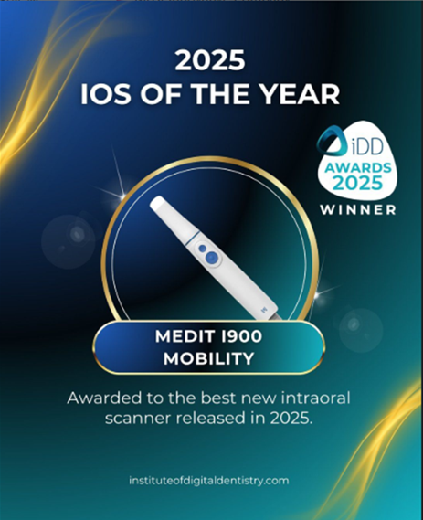 Medit Intraoral-Scanner des Jahres 2025 Medit wurde bei den „Intraoral Scanner Awards“ 2025 des Institute of Digital Dentistry (iDD) mit zwei Auszeichnungen geehrt: Der i900 Mobility wurde zum „Intraoral-Scanner des Jahres“ gekürt, und das Unternehmen wurde als „innovativstes Unternehmen“ ausgezeichnet. Der i900 Mobility wurde unter den im Jahr 2025 auf den Markt gebrachten Produkten zum „Intraoralscanner des Jahres“ gekürt. Laut iDD lag der Schwerpunkt […]